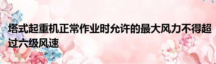 导读 大家好,今天小六子来为大家解答以下的问题,关于塔式起重机正常作业时允许的最大风力不得超过六级风速这个很多人还不知道,现在让我们一起