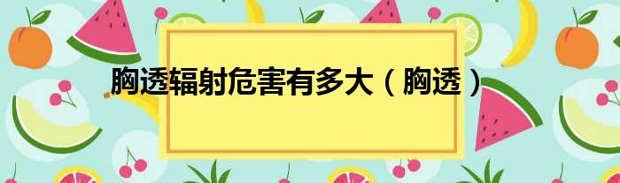 大家好,今天小六子来为大家解答以下的问题,关于胸透辐射危害有多大,胸透这个很多人还不知道,现在让我们一起来看看吧!