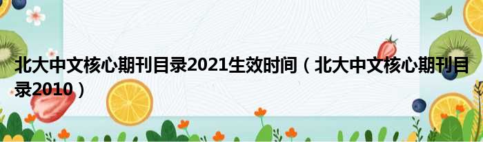 北大中文核心期刊目录2021生效时间(北大中文核心期刊目录2010)
