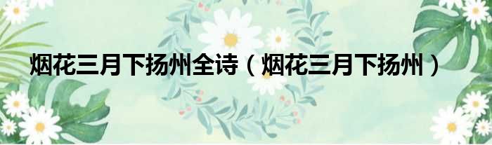 大家好,今天小六子来为大家解答以下的问题,关于烟花三月下扬州全诗,烟花三月下扬州这个很多人还不知道,现在让我们一起来看看吧!