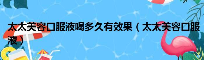 大家好,今天小六子来为大家解答以下的问题,关于太太美容口服液喝多久有效果,太太美容口服液这个很多人还不知道,现在让我们一起来看看吧!