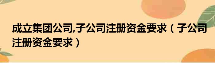 成立集团公司,子公司注册资金要求(子公司注册资金要求)