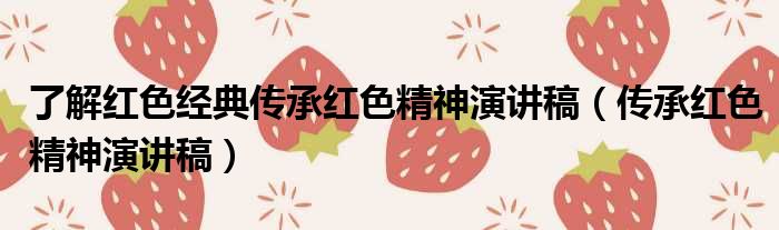 了解红色经典传承红色精神演讲稿(传承红色精神演讲稿)
