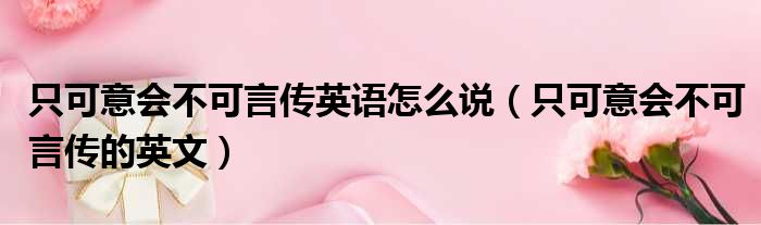 只可意会不可言传英语怎么说(只可意会不可言传的英文)