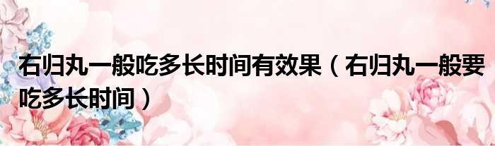 右归丸一般吃多长时间有效果(右归丸一般要吃多长时间)