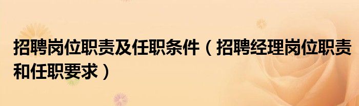 招聘岗位职责及任职条件(招聘经理岗位职责和任职要求)