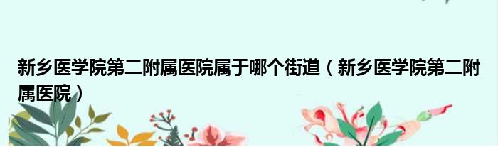 新乡医学院第二附属医院属于哪个街道(新乡医学院第二附属医院)