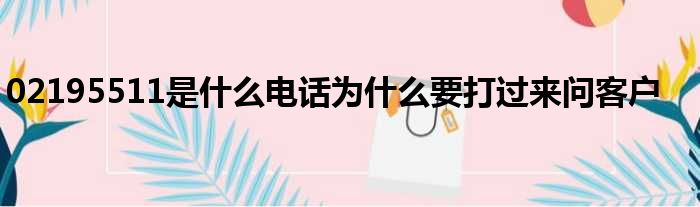 导读 大家好,今天小六子来为大家解答以下的问题,关于02195511是什么电话为什么要打过来问客户这个很多人还不知道,现在让我们一起来看看吧!1、
