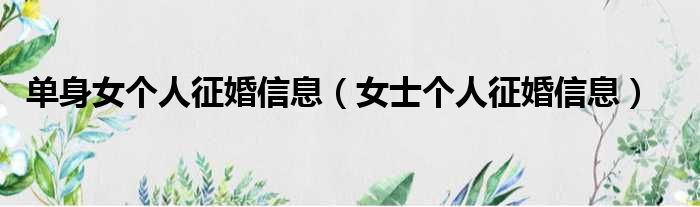 导读 大家好,今天小六子来为大家解答以下的问题,关于单身女个人征婚信息,女士个人征婚信息这个很多人还不知道,现在让我们一起来看看吧!1、世