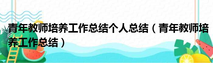 青年教师培养工作总结个人总结(青年教师培养工作总结)