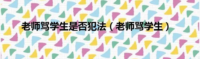 导读 大家好,今天小六子来为大家解答以下的问题,关于老师骂学生是否犯法,老师骂学生这个很多人还不知道,现在让我们一起来看看吧!1、骂人肯定