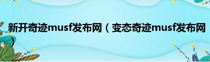 新开奇迹musf发布网(变态奇迹musf发布网)