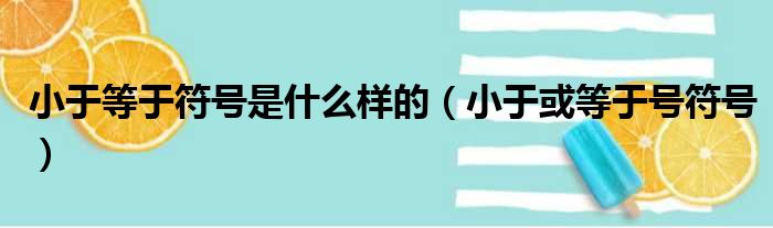 导读 大家好,今天小六子来为大家解答以下的问题,关于小于等于符号是什么样的,小于或等于号符号这个很多人还不知道,现在让我们一起来看看吧!1