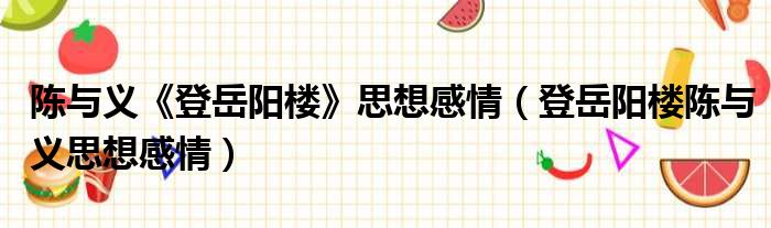 陈与义《登岳阳楼》思想感情(登岳阳楼陈与义思想感情)