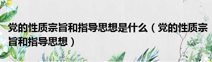 党的性质宗旨和指导思想是什么(党的性质宗旨和指导思想)