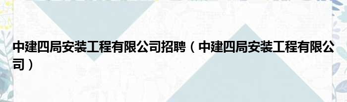 中建四局安装工程有限公司招聘(中建四局安装工程有限公司)