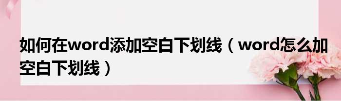 导读 大家好,今天小六子来为大家解答以下的问题,关于如何在word添加空白下划线,word怎么加空白下划线这个很多人还不知道,现在让我们一起来看