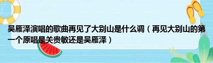 导读 大家好,今天小六子来为大家解答以下的问题,关于吴雁泽演唱的歌曲再见了大别山是什么调,再见大别山的第一个原唱是关贵敏还是吴雁泽这个很