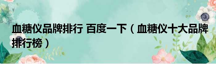 血糖仪品牌排行 百度一下(血糖仪十大品牌排行榜)