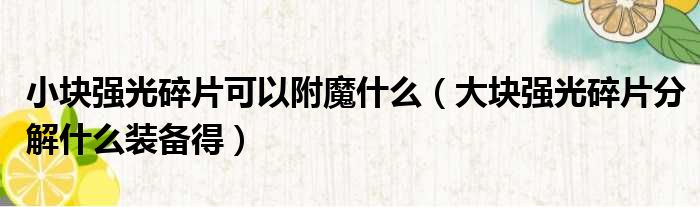 导读 大家好,今天小六子来为大家解答以下的问题,关于小块强光碎片可以附魔什么,大块强光碎片分解什么装备得这个很多人还不知道,现在让我们一