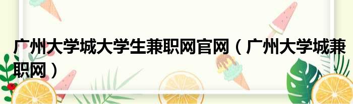 广州大学城大学生兼职网官网(广州大学城兼职网)