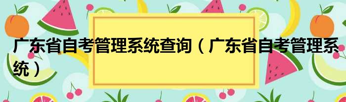 导读 大家好,今天小六子来为大家解答以下的问题,关于广东省自考管理系统查询,广东省自考管理系统这个很多人还不知道,现在让我们一起来看看吧