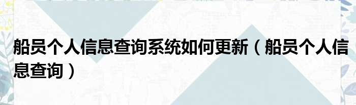 船员个人信息查询系统如何更新(船员个人信息查询)