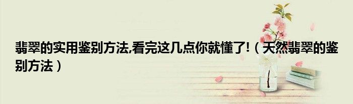 导读 大家好,今天小六子来为大家解答以下的问题,关于翡翠的实用鉴别方法,看完这几点你就懂了!,天然翡翠的鉴别方法这个很多人还不知道,现在让