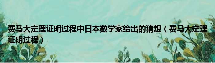 费马大定理证明过程中日本数学家给出的猜想(费马大定理证明过程)