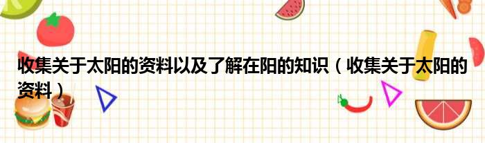收集关于太阳的资料以及了解在阳的知识(收集关于太阳的资料)