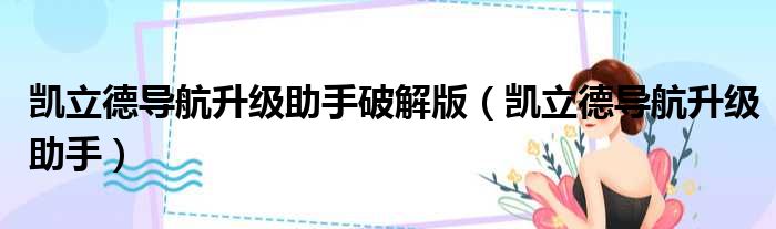 凯立德导航升级助手破解版(凯立德导航升级助手)