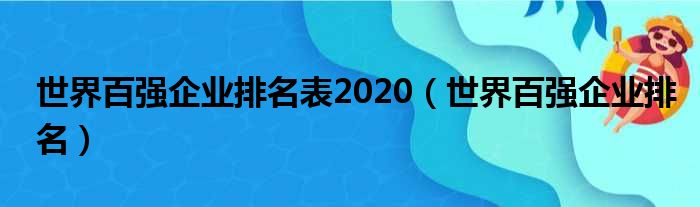 大家好,今天小六子来为大家解答以下的问题,关于世界百强企业排名表2020,世界百强企业排名这个很多人还不知道,现在让我们一起来看看吧!