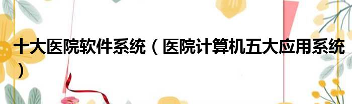 导读 大家好,今天小六子来为大家解答以下的问题,关于十大医院软件系统,医院计算机五大应用系统这个很多人还不知道,现在让我们一起来看看吧!1