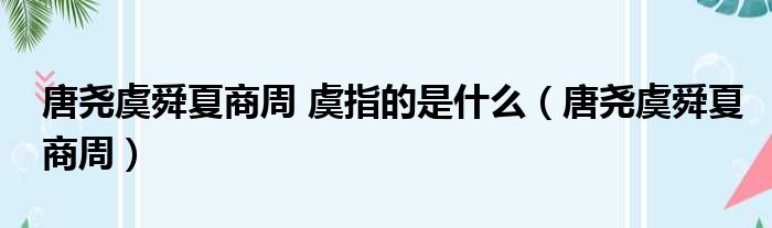 唐尧虞舜夏商周 虞指的是什么(唐尧虞舜夏商周)