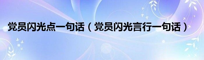 大家好,今天小六子来为大家解答以下的问题,关于党员闪光点一句话,党员闪光言行一句话这个很多人还不知道,现在让我们一起来看看吧!