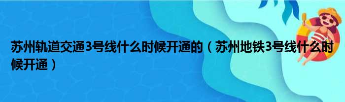 苏州轨道交通3号线什么时候开通的(苏州地铁3号线什么时候开通)