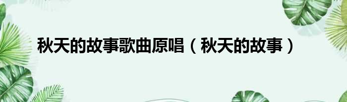 大家好,今天小六子来为大家解答以下的问题,关于秋天的故事歌曲原唱,秋天的故事这个很多人还不知道,现在让我们一起来看看吧!