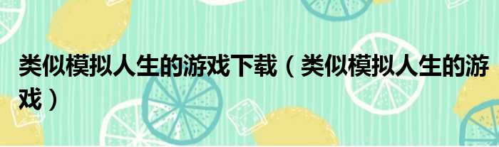 类似模拟人生的游戏下载(类似模拟人生的游戏)