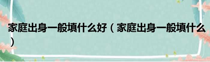 导读 大家好,今天小六子来为大家解答以下的问题,关于家庭出身一般填什么好,家庭出身一般填什么这个很多人还不知道,现在让我们一起来看看吧!1
