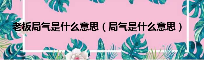 大家好,今天小六子来为大家解答以下的问题,关于老板局气是什么意思,局气是什么意思这个很多人还不知道,现在让我们一起来看看吧!