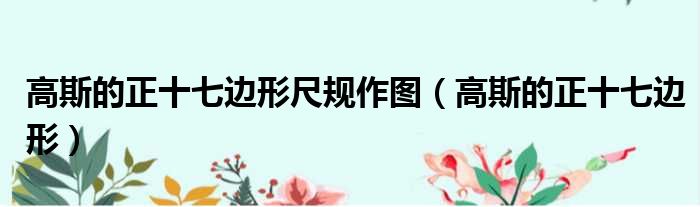 高斯的正十七边形尺规作图(高斯的正十七边形)