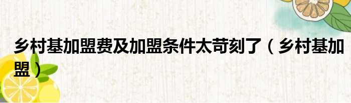 乡村基加盟费及加盟条件太苛刻了(乡村基加盟)