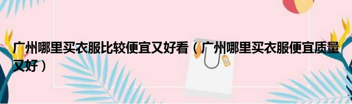 广州哪里买衣服比较便宜又好看(广州哪里买衣服便宜质量又好)