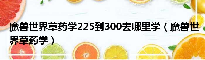 魔兽世界草药学225到300去哪里学(魔兽世界草药学)