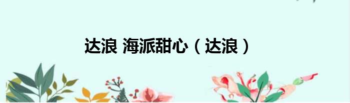大家好,今天小六子来为大家解答以下的问题,关于达浪 海派甜心,达浪这个很多人还不知道,现在让我们一起来看看吧!