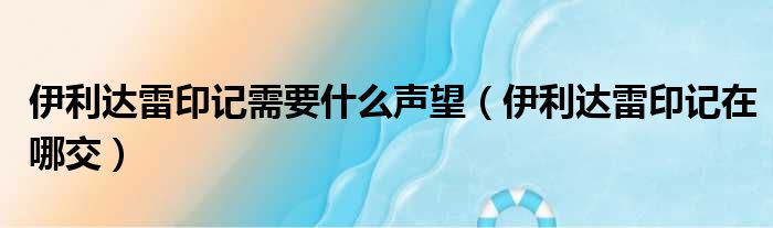 伊利达雷印记需要什么声望(伊利达雷印记在哪交)