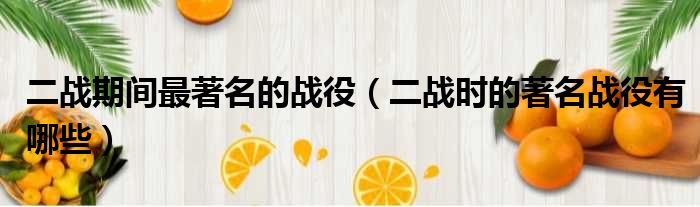 二战期间最著名的战役(二战时的著名战役有哪些)