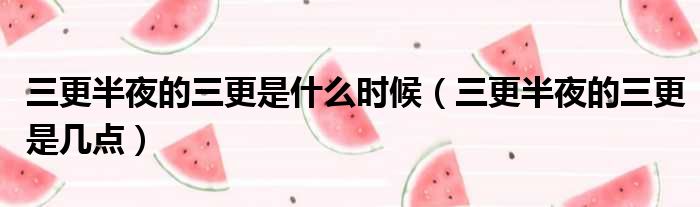 三更半夜的三更是什么时候(三更半夜的三更是几点)