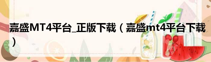 嘉盛MT4平台_正版下载(嘉盛mt4平台下载)