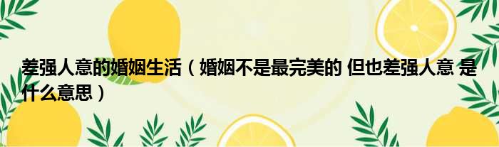 差强人意的婚姻生活(婚姻不是最完美的 但也差强人意 是什么意思)